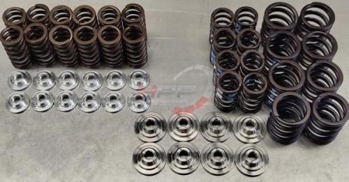 Sady ventilových pružin se skládají z ventilových pružin (jednoduchých nebo dvojitých) a ventilových misek z vysoce pevného hliníku. Možno dodat na přání misky z titanu za příplatek.