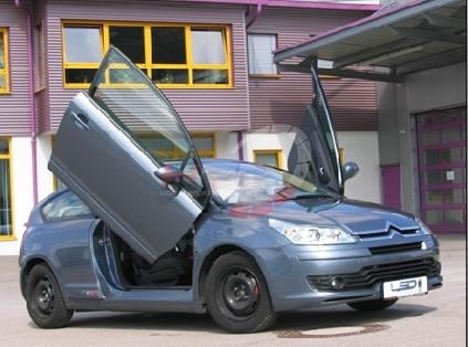 Kompletní systém vertikálního otevírání dveří LSD (Lambo Style Doors) pro Citroen C4 typ 849 L, rok výroby 02/05- (coupe). Originální systém od německého výrobce KW automotive. Jednoduchá montáž na originální úchyty pantů dveří bez nutnosti zásadních zásahů do karoserie vozu. Kompletní dodávka včetně montážního příslušenství. Bezpečný systém testovaný crash testy. Homologace TÜV.