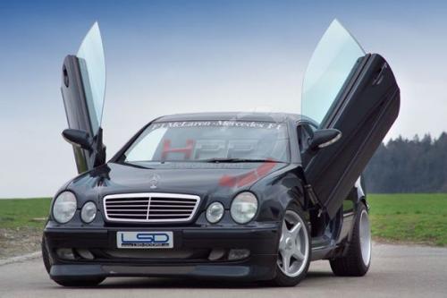Kompletní systém vertikálního otevírání dveří LSD (Lambo Style Doors) pro Mercedes CLK typ 208, rok výroby 06/97-06/02, Coupe, Cabrio. Originální systém od německého výrobce KW Automotive. Jednoduchá montáž na originální úchyty pantů dveří bez nutnosti zásadních zásahů do karoserie vozu. Kompletní dodávka včetně montážního příslušenství. Bezpečný systém testovaný crash testy. Homologace TÜV.