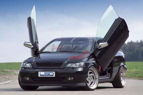 Kompletní systém vertikálního otevírání dveří LSD (Lambo Style Doors) pro Opel Astra H/GTC typ A-H/C, rok výroby 03/05-, coupe, cabrio. Originální systém od německého výrobce KW Automotive. Jednoduchá montáž na originální úchyty pantů dveří bez nutnosti zásadních zásahů do karoserie vozu. Kompletní dodávka včetně montážního příslušenství. Bezpečný systém testovaný crash testy. Homologace TÜV.