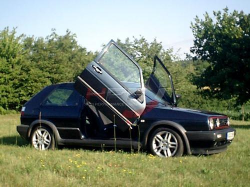Kompletní systém vertikálního otevírání dveří LSD (Lambo Style Doors) pro VW Golf II typ 19E, rok výroby 8/83-12/92, 3 dveře. Originální systém od německého výrobce KW Automotive. Jednoduchá montáž na originální úchyty pantů dveří bez nutnosti zásadních zásahů do karoserie vozu. Kompletní dodávka včetně montážního příslušenství. Bezpečný systém testovaný crash testy. Homologace TÜV.