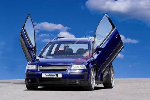 Kompletní systém vertikálního otevírání dveří LSD (Lambo Style Doors) pro VW Passat typ 3B, 3BG, rok výroby 10/96-, kombi, sedan. Originální systém od německého výrobce KW Automotive. Jednoduchá montáž na originální úchyty pantů dveří bez nutnosti zásadních zásahů do karoserie vozu. Kompletní dodávka včetně montážního příslušenství. Bezpečný systém testovaný crash testy. Homologace TÜV.