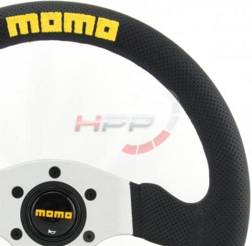 Volant Momo Competition Evo - černý/stříbrný - kůže. Průměr 320mm.
