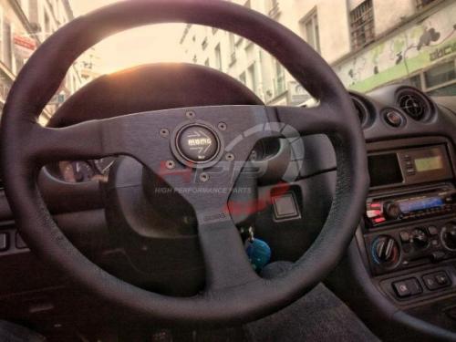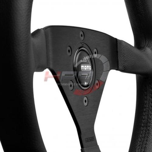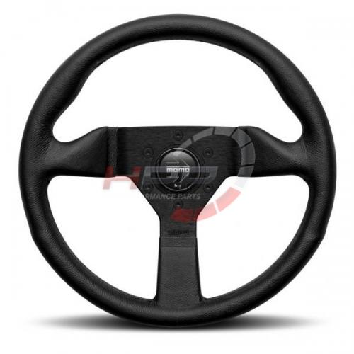 Sportovní kožený volant Momo model Monte Carlo s klasickým jednoduchým designem, který se hodí do youngtimerů, klasických vozů i veteránů. Na spodním paprsku je vygravírováno decentní logo Momo. Na černém tlačítku klaksonu je také logo Momo.