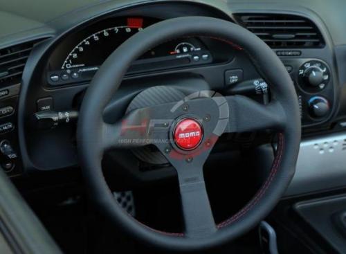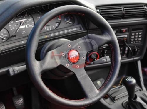 Sportovní kožený volant Momo model Monte Carlo s klasickým jednoduchým designem, který se hodí do youngtimerů, klasických vozů i veteránů. Na spodním paprsku je vygravírováno decentní logo Momo. Na červeném tlačítku klaksonu je také logo Momo.
