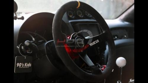Závodní tříramenný semišový volant Sparco model R345 Monza. Černé eloxované paprsky. Věnec potažený kvalitní černou semiší zajišťuje perfektní a přesnou práci s volantem. Efektivní prvky v podobě loga Sparco na pravém paprsku a středové houkačky s logem. Středící proužek ve žluté barvě.