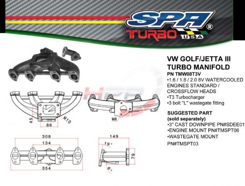 Výfukové svody SPA Turbo VW Golf 3 / Jetta 3 / Vento / Polo / Passat 1.6/1.8/2.0 8V vodou chlazený.