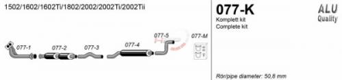 Výfukový systém Simons BMW 1502 / 1602 / 1602Ti / 1802 / 2002 / 2002Ti / 2002Tii (66-77). Kompletní výfukový systém od výfukových svodů.