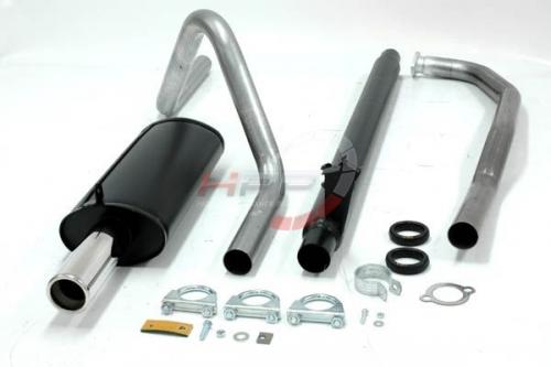 Výfukový systém Simons Volvo Amazon (61-66). Kompletní výfukový systém od výfukových svodů. Určeno pro modely s jedním vývodem (single hole flange).