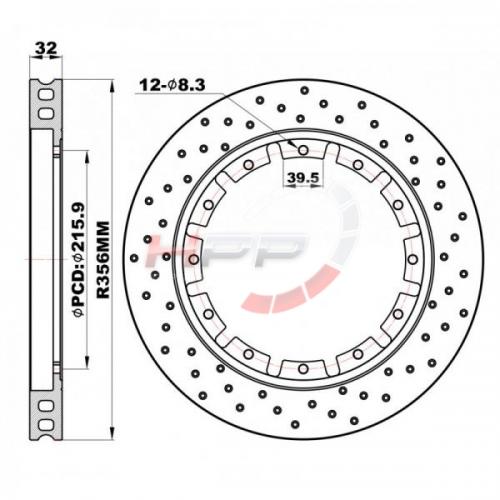 Zadní brzdové kotouče D2 Racing 356x32mm - děrované - plo...