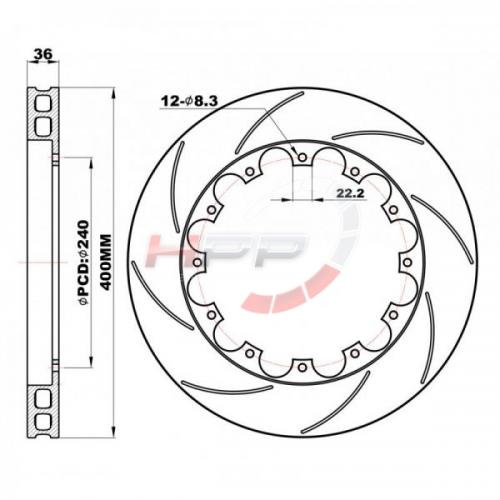 Zadní brzdové kotouče D2 Racing 400x36mm - drážkované - pevné (2011-).