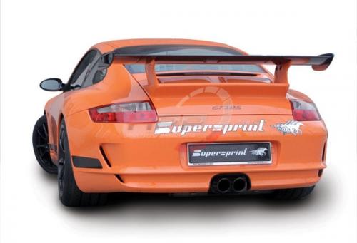 Zadní díl výfuku Supersprint Porsche 997 GT3 RS 3.6i 415PS (07-). Eliminuje sériové boční tlumiče.