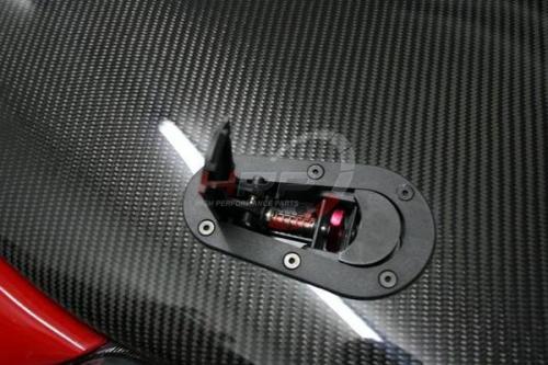 Zámky / držáky kapoty Aerocatch. Uzamykatelné. Montáž z vrchu kapoty. Barevné provedení: černé.