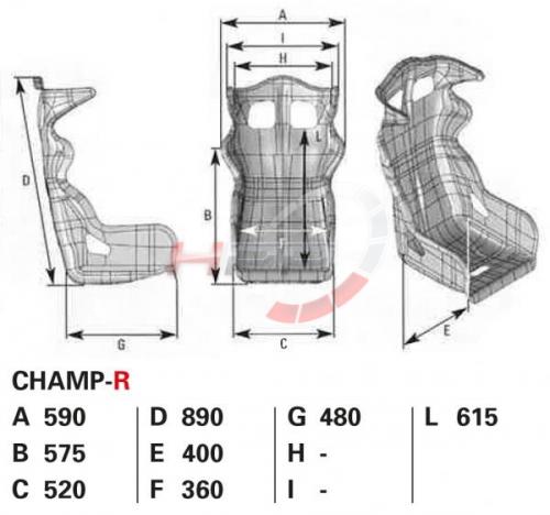 Závodní sedačka OMP Champ-R vyrobená ze skelných vláken s mírně otevřenou skořepinou pro větší volnost pohybu v oblasti hrudníku a ramen. Hluboká poloha v sedě, předtvarovaná opěrka nohou. Značka OMP je hojně používaná v oblasti motorsportu. Jejich produkty splňují vysoké nároky a požadavky profesionálních jezdců.