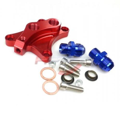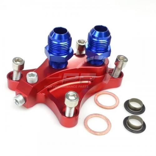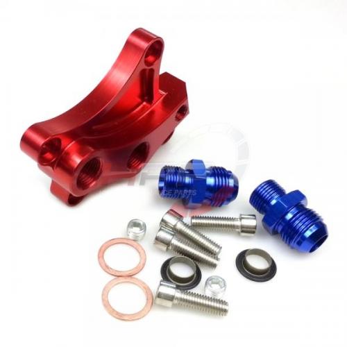 Slouží k napojení olejového chladiče na stávající olejový okruh. Adaptér na blok motoru umožňuje mnohem větší flexibilitu při montáži vedení. Vyrobeno ze slitiny hliníku na CNC. Umožňuje připojení dvou čidel na přídavné budíky (1/8"-NPT).
