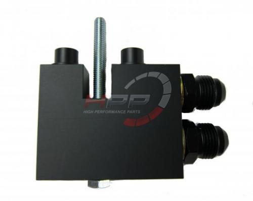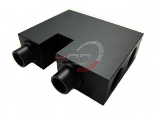 Slouží k napojení přídavného olejového chladiče na stávající olejový okruh k sériovému. Adaptér na olejový výměník umožňuje mnohem větší flexibilitu při montáži vedení. Vyrobeno ze slitiny hliníku na CNC.