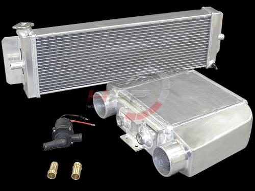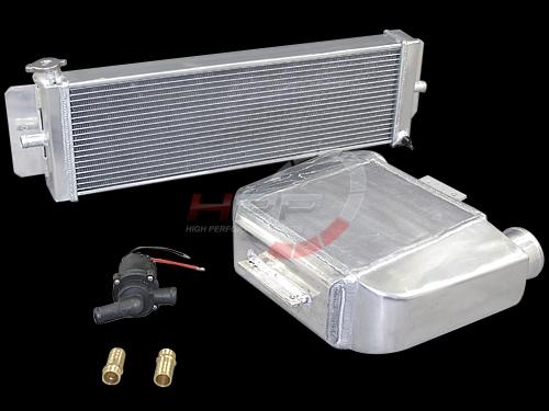 Aftercooler kit s externím vodním chladičem a vodní pumpou.