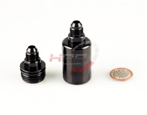 Benzínový filtr Russell Performance style univerzální D-06 (AN6). Hliníkový. Eloxovaný. Šroubovací koncovky D-06 (AN6).