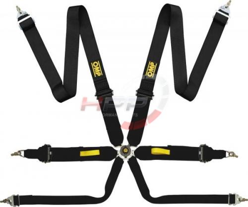 Bezpečnostní pás OMP Tecnica 6-bodový černý - karabina (FIA homologace).