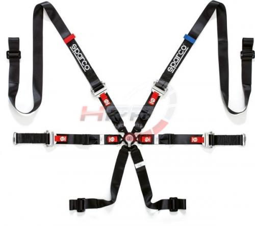 Závodní 6-bodový bezpečnostní pás Sparco primárně určený pro rally. Hliníkové nastavovače a spony. Systém utahování Pull-Up. Povoleno pouze ve spojení se systémy FHR (včetně H.A.N.S.). Uchycení pro ochranný rám (ramena a stehna).