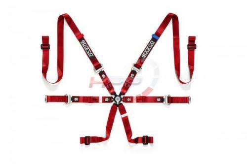 Závodní 6-bodový bezpečnostní pás Sparco primárně určený pro rally. Hliníkové nastavovače a spony. Systém utahování Pull-Up. Povoleno pouze ve spojení se systémy FHR (včetně H.A.N.S.). Uchycení pro ochranný rám (ramena a stehna).