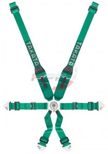 Bezpečnostní závodní pás Takata Race 6 HANS 6-bodový zelený - uchycení na sponu (FIA)