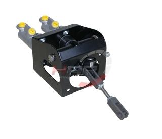 - Jednotka využívá systém dvojího brzdového válce, který je ovládán vyrovnávací propojkou, která zajišťuje rozložení brzdného účinku mezi předními a zadními brzdami.