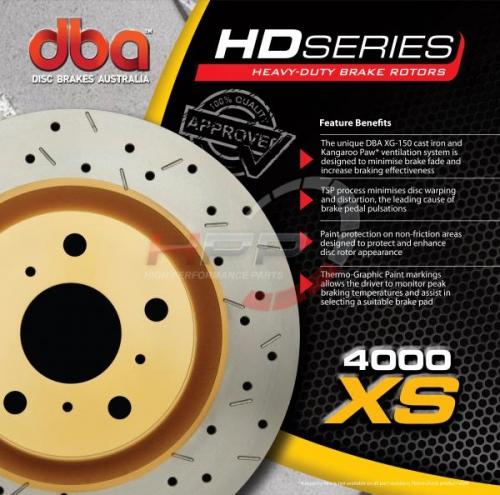 4000 Series Street Heavy Duty XS Premium cross-driled - sportovní řada kotoučů. Řada kotoučů Street Heavy Duty XS je určena pro uživatele, kteří hledají výkonnější kotouče pro běžný provoz. Kotouče této řady vynikají patentovaným chlazením "Kangaroo paw", XG150 High Carbon legovanou ocelí zvyšující tepelnou odolnost kotouče zaručující dlouhodobou funkčnost kotouče při vysoké zátěži, tepelnou stabilitou profilování (TSP) prodlužující životnost kotouče, barevným termo značením pro kontrolu maximálního ohřátí za jízdy. Kotouče jsou také opatřeny barevným nátěrem pro prodloužení životnosti.