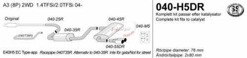 Catback výfuk Simons Audi A3 8P 2WD 1.4TSi/2.0 TFSi (03-13). Kompletní výfukový systém od katalyzátoru.