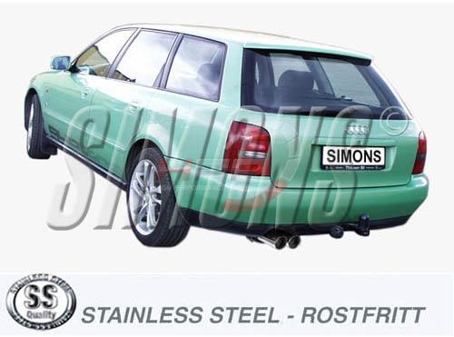 Catback výfuk Simons Audi A4 B5 Quattro Sedan/Avant 1.8 125PS/1.8T 150/180PS/1.9 TDI 105-115PS (94-00). Kompletní výfukový systém od katalyzátoru.