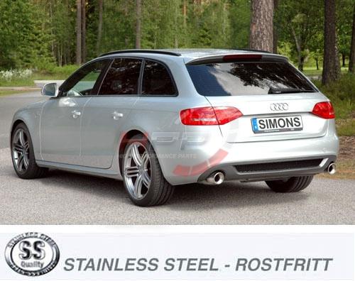 Catback výfuk Simons Audi A4 B8 FWD/Quattro Sedan/Avant 1.8TFSi/2.0TFSi (08-15). Kompletní výfukový systém od katalyzátoru.