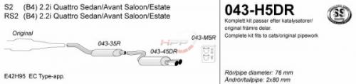 Catback výfuk Simons Audi S2 / RS2 B4 Quattro 2.2i 20V Sedan/Avant (93-96). Kompletní výfukový systém od katalyzátoru.