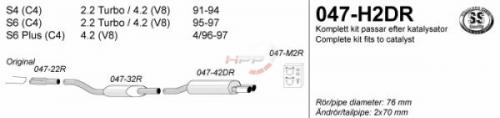 Catback výfuk Simons Audi S4 / S6 / S6 Plus C4 2.2T/4.2 V8 (91-97). Kompletní výfukový systém od katalyzátorů.