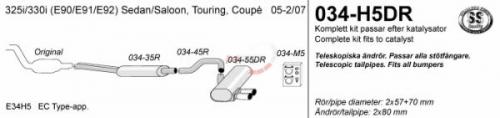 Catback výfuk Simons BMW 3-Series E90 / E91 / E92 / E93 325i/330i (05-02/07). Kompletní výfukový systém od katalyzátoru.