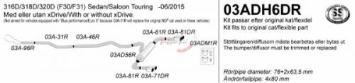 Catback výfuk Simons BMW 3-Series F30 / F31 316d/318d/320d (11-06/15). Kompletní výfukový systém od katalyzátoru. Pasuje i na Xdrive modely.