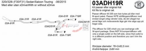 Catback výfuk Simons BMW 3-Series F30 / F31 320i/328i (11-06/15). Kompletní výfukový systém od katalyzátoru. Pasuje i na Xdrive modely.