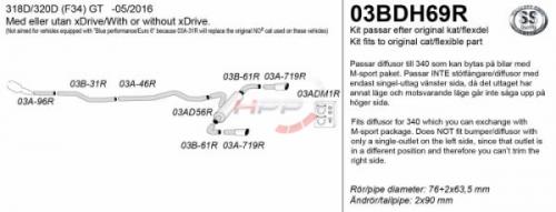Catback výfuk Simons BMW 3-Series F34 GT 318d/320d vč. xDrive (13-05/16). Kompletní výfukový systém od katalyzátoru.