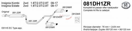 Catback výfuk Simons Opel Insignia 2WD kombi 1.6T/2.0T/2.8T (09-17). Kompletní výfukový systém od středového tlumiče.