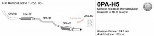 Catback výfuk Simons Peugeot 406 kombi 2.0 Turbo (96-04). Kompletní výfukový systém od katalyzátoru