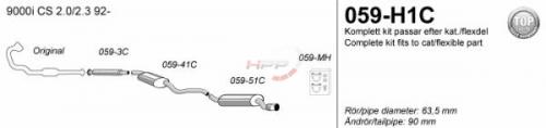 Catback výfuk Simons Saab 9000 CS 2.0/2.3 (92-98). Kompletní výfukový systém od katalyzátoru.