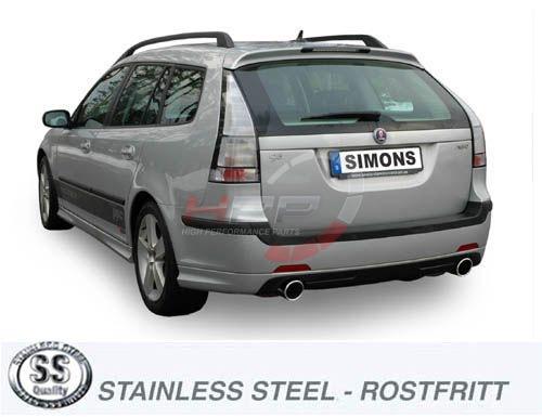 Catback výfuk Simons Saab 9-3 2.0T Aero/2.8T Sport Limousine/Sport Caravan/Sport Cabrio - 58L nádrž (06-). Kompletní výfukový systém od katalyzátoru.