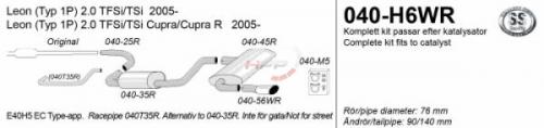 Catback výfuk Simons Seat Leon 1P 2.0TFSi/TSi vč. Cupra (05-12). Kompletní výfukový systém od katalyzátoru.