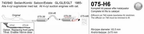 Catback výfuk Simons Volvo 740 / 940 GL/GLE/GLT sedan/kombi N/A (85-). Kompletní výfukový systém od katalyzátoru. Pasuje na všechny 4 válcové atmosférické motory s katalyzátorem.