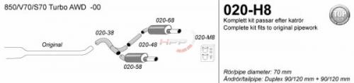 Catback výfuk Simons Volvo 850 Turbo 4WD (-00). Kompletní výfukový systém od katalyzátoru.