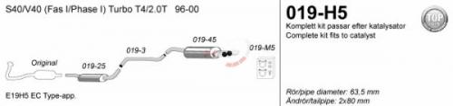 Catback výfuk Simons Volvo S40 / V40 Turbo 2.0T T4 (96-00). Kompletní výfukový systém od katalyzátoru.