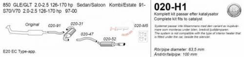 Catback výfuk Simons Volvo S70 / V70 2.0-2.5 126-170PS (97-00). Kompletní výfukový systém od katalyzátoru.