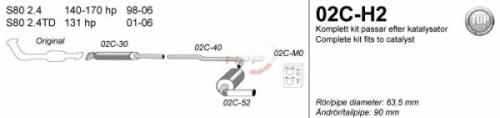 Catback výfuk Simons Volvo S80 2.4 140-170PS (98-06). Kompletní výfukový systém od katalyzátoru.