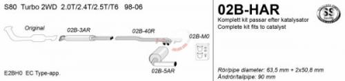 Catback výfuk Simons Volvo S80 Turbo 2WD 2.0T/2.4T/2.5T T6 (98-06). Kompletní výfukový systém od katalyzátoru.