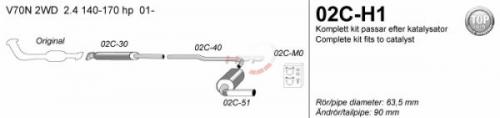 Catback výfuk Simons Volvo V70N 2WD 2.4 140PS-170PS (01-). Kompletní výfukový systém od katalyzátoru.