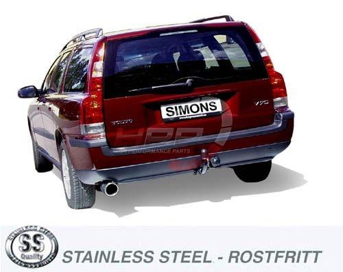 Catback výfuk Simons Volvo V70N Turbo 2WD 2.0T/2.4T/2.5T T5 / 2.4D/2.5D D5 (01-05/04). Kompletní výfukový systém od katalyzátoru.